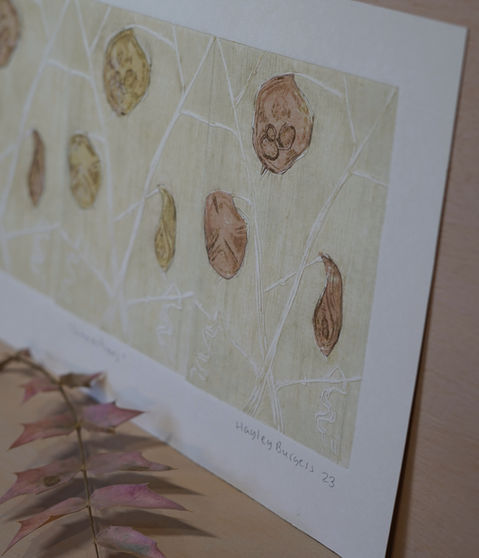 Mokulito is an exciting and transformative process which produces a small number of unique limited edition prints. This is in part due to the wooden plate degrading during the inking process and the unpredictable nature of using wood. In my work I like to use reclaimed wood where possible and add additional layers of linocut or monotype..